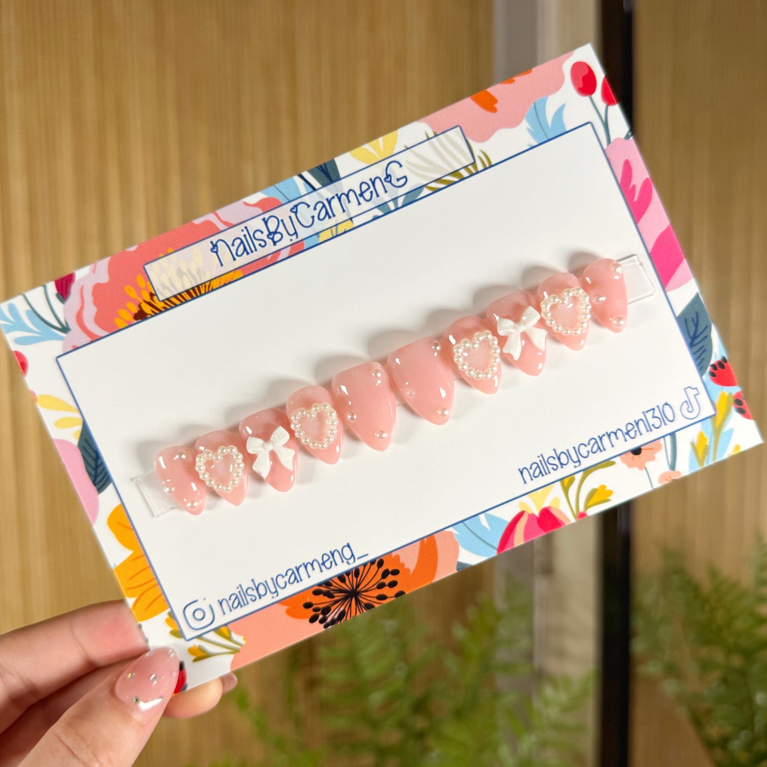 Hi, I’m Carmen , the owner of NailsByCarmenG 🌸 I named my business after my name because it’s a one women show , no employees just me who runs it all. What I do ? I’m the creator , web designer, marketer, customer service, shipping fulfillment, content creator, and so much more 🥰 every set is made to order .