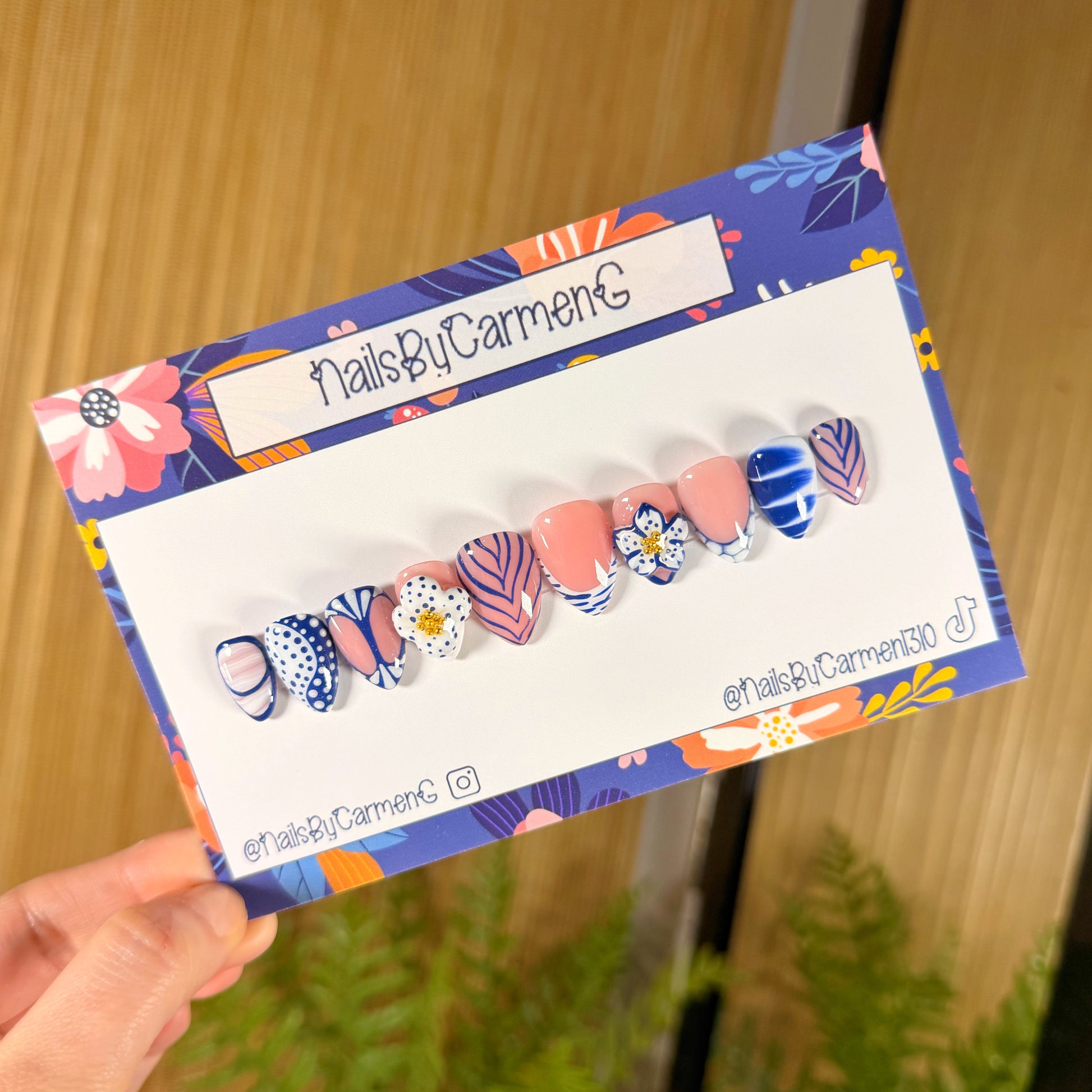 Our press on nails give you a perfect, non-damaging manicure in seconds for a fraction of the salon cost. Wear them weeks straight or a few days at a time—you decide. Hand painted *