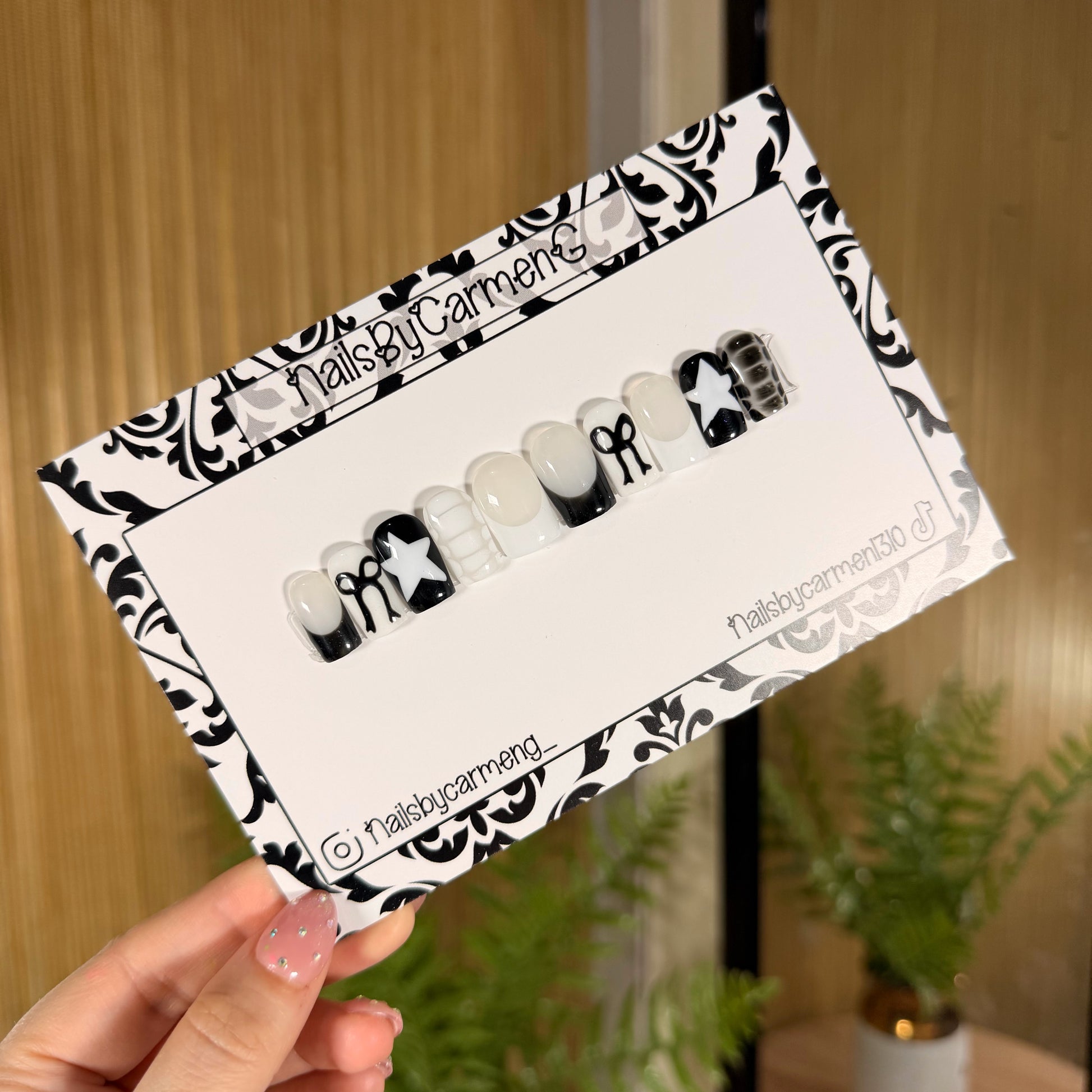 Black and white stars and bows Acrylic Press on nails